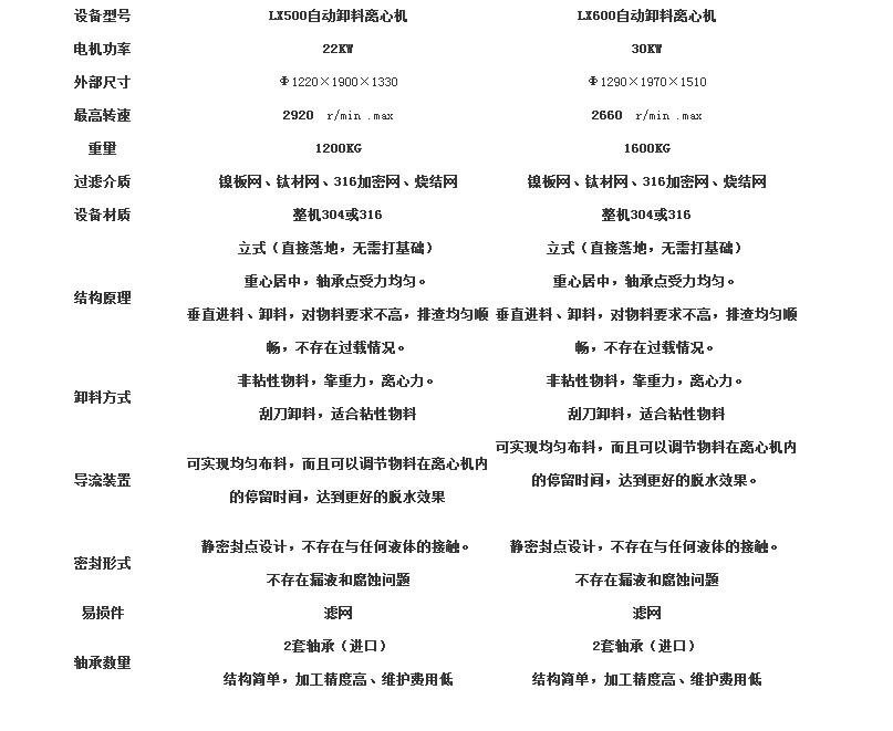 LX全自動卸料離心機參數(shù)表:(部分規(guī)格)